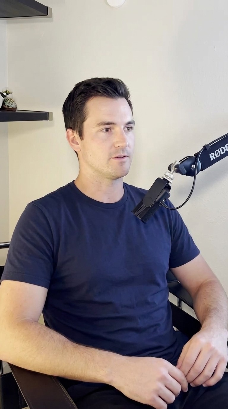 Podcast-style clips feel native and authentic in social feeds, bypassing ad skepticism. The listicle structure (3 ways) creates a clear value promise that encourages viewers to watch through to the end. Positioning AI capabilities through a casual conversation makes complex technology feel accessible to non-technical audiences.