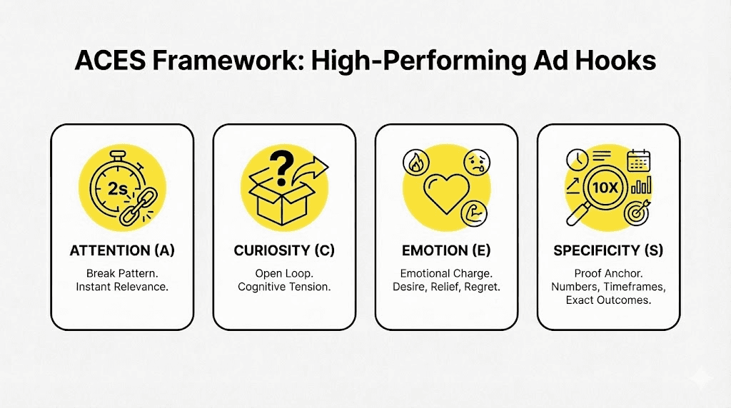 Ad Hooks in 2026: ACES Framework and 73 High Performing Examples