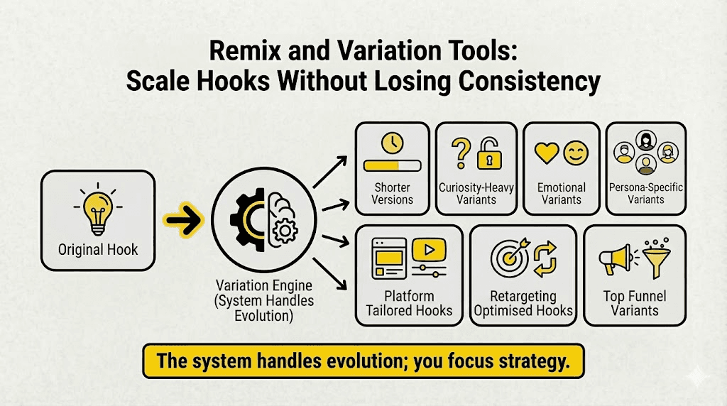 A hook that works on one platform often needs adaptation for another. Modern teams create multi-variant hooks tailored for each channel.