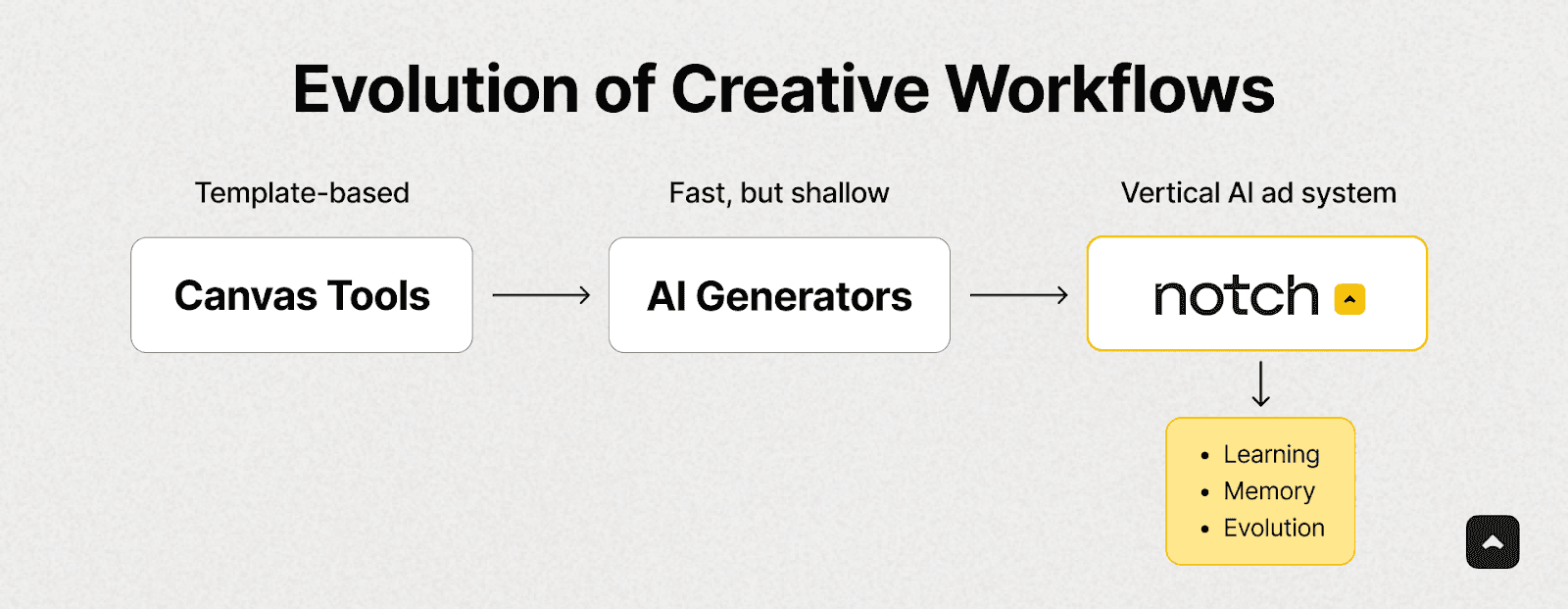 We’ll look at both workflows from the “canvas of the world” that empowers human design to the “vertical AI engines” trained specifically for ad performance.