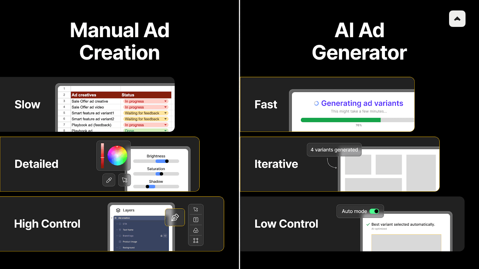 The smartest teams are no longer choosing between handcrafted ads and automated ones; they’re creating hybrid workflows that blend both worlds.