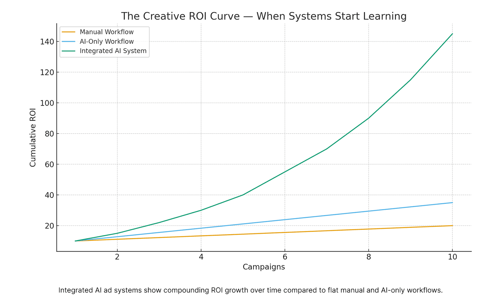 Much of this advantage emerges only when the AI has a creative brain capable of remembering tone, assets, and performance patterns over time.