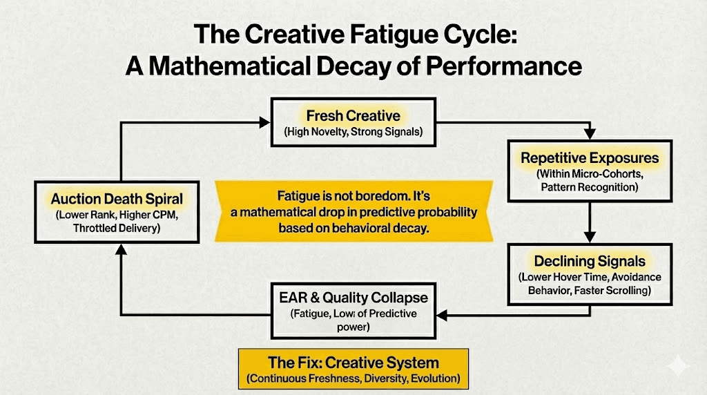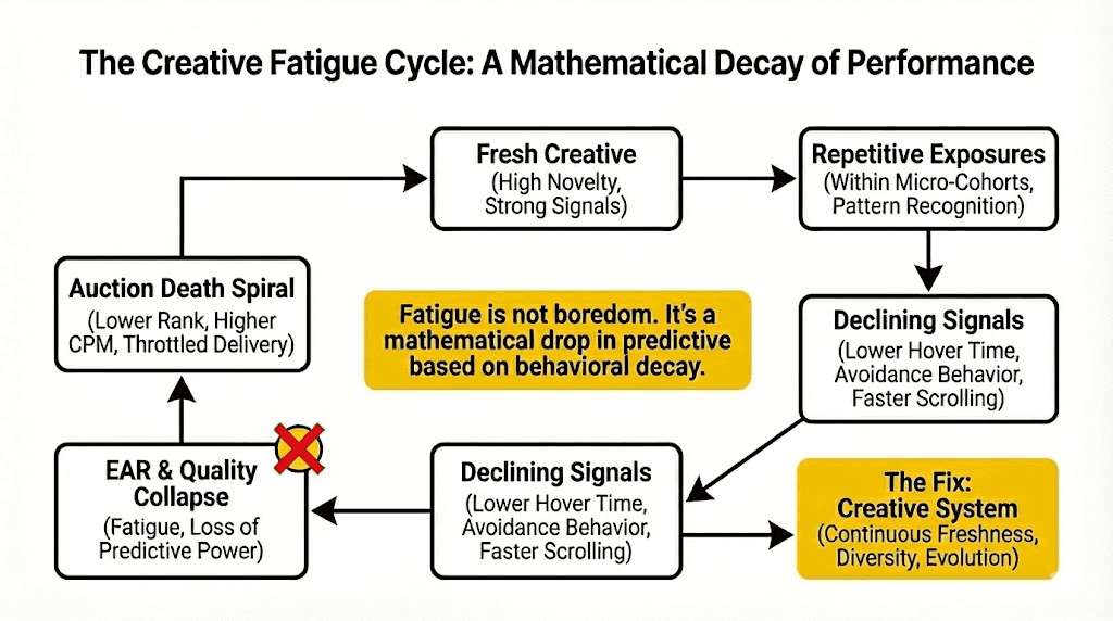 How creative fatigue mathematically collapses your score