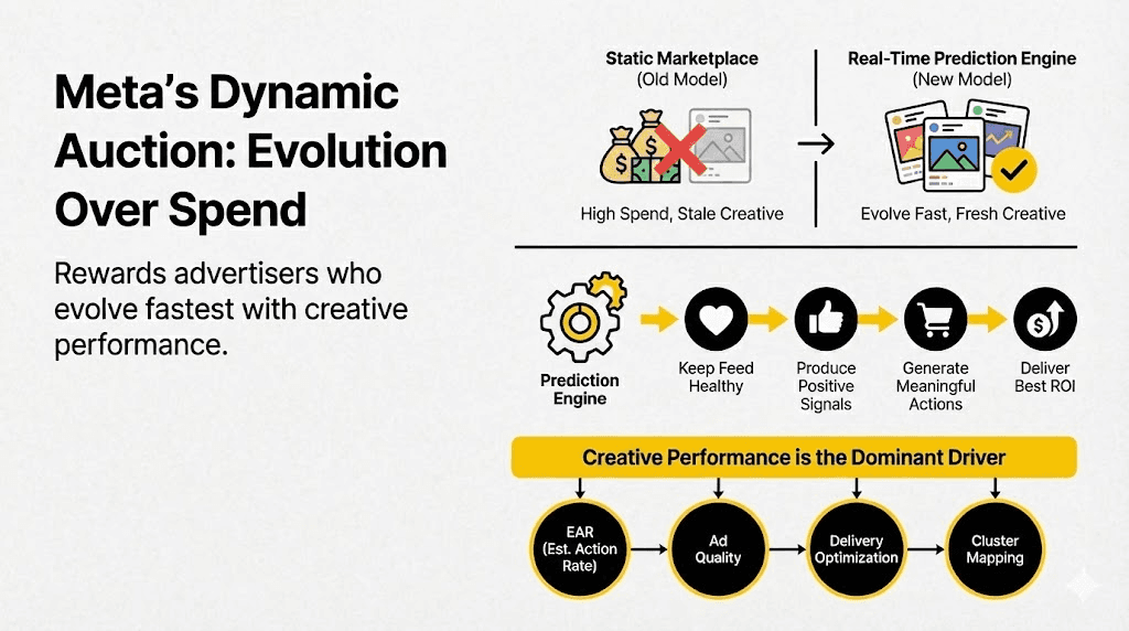 But inside Meta, the auction behaves less like an auction and more like a real-time prediction engine optimized for two things: