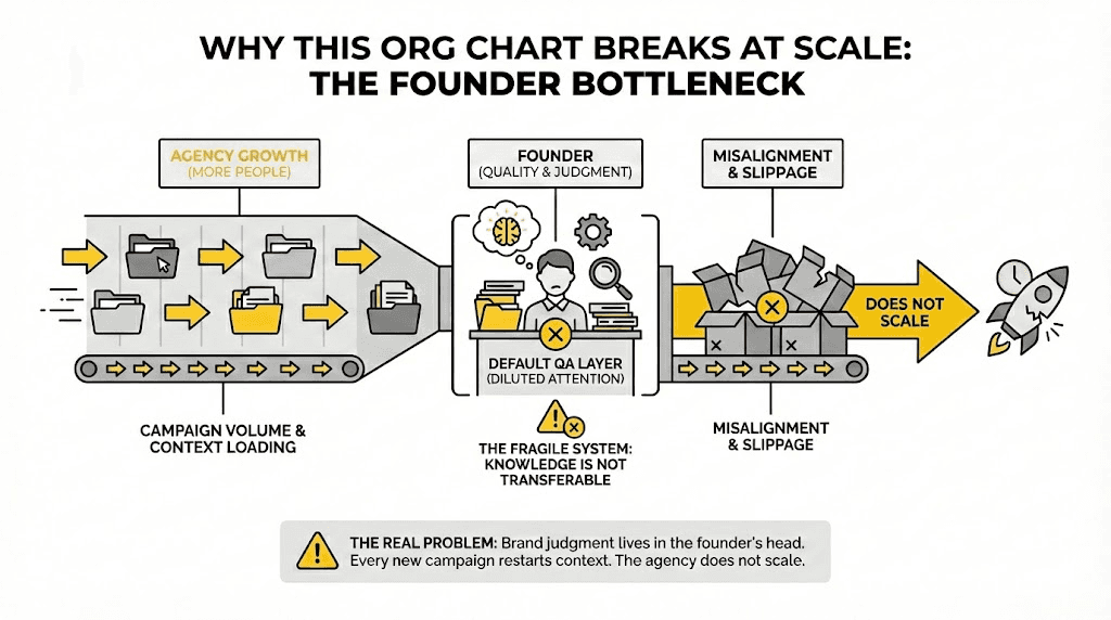 If your founder is still approving ads, your org chart is outdated.