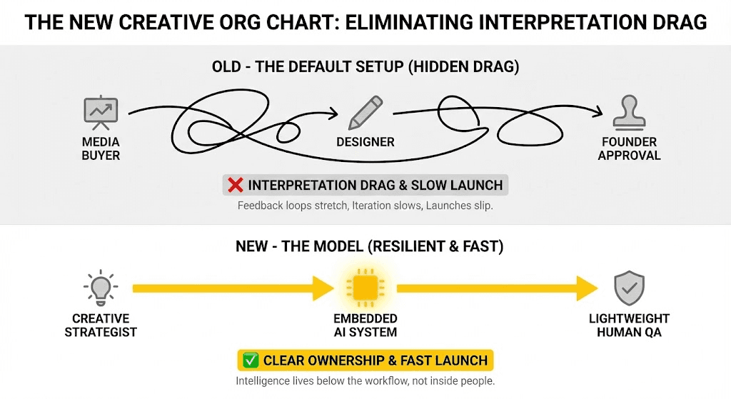 It’s an org design shift where creative intelligence moves into the system, so every new ad starts informed, not guessed.