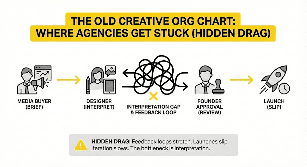 The highest-velocity agencies today are building creative systems where brand knowledge, performance context, and creative logic live underneath every workflow, so ads are generated as responses to intelligence, not fresh guesses.