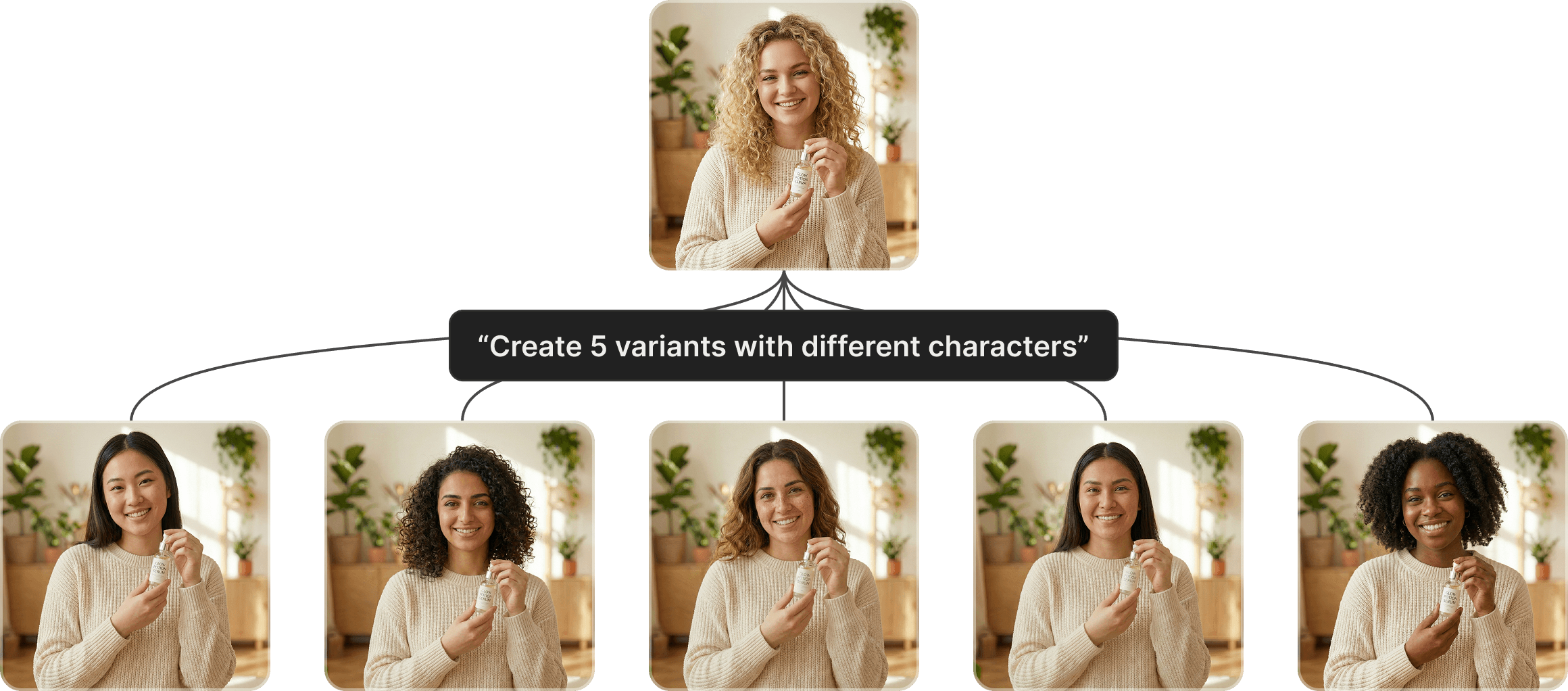 Fully edited with cuts, transitions, captions, and sound design. Download it or push directly to Meta and TikTok.