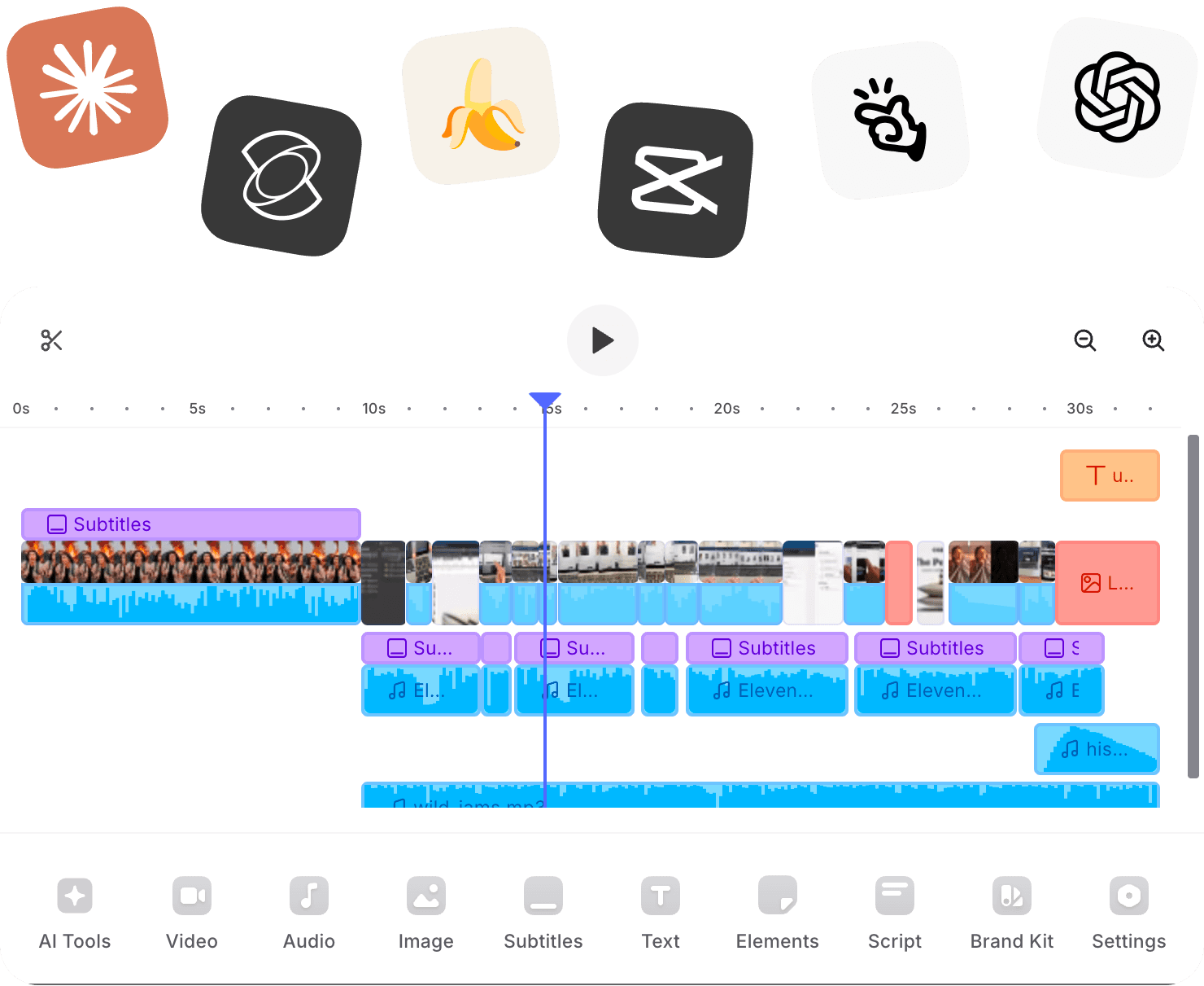 Script, avatar, voice, a-roll, b-roll, background music, generated and assembled for you.